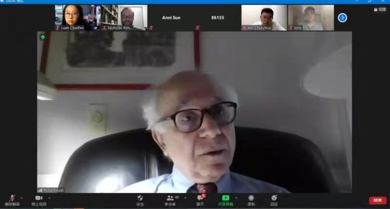 On June 5, 2021, Robert Audi, professor of the O'Brien Philosophy Department at the University of Notre Dame, was invited to explain the topic of "Moral Epistemology from A Historical Perspective" in detail for the teachers and students of the School of Philosophy and Sociology through the zoom platform.