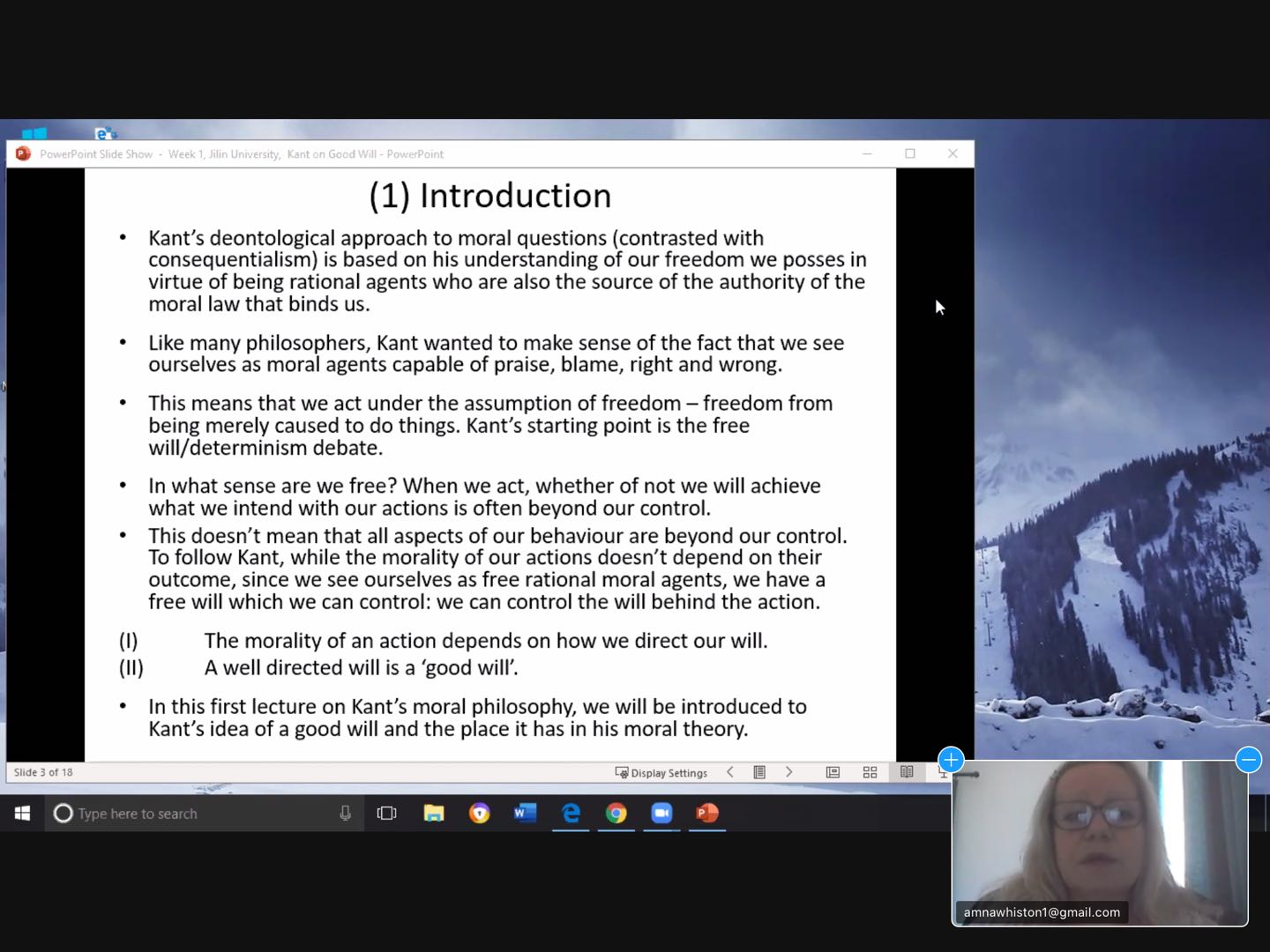 On May 14, Amna mainly introduced the concept of goodwill and its place in Kant's moral philosophy. Kant's deontological approach to moral issues is based on Kant's understanding that we humans have freedom as rational subjects.