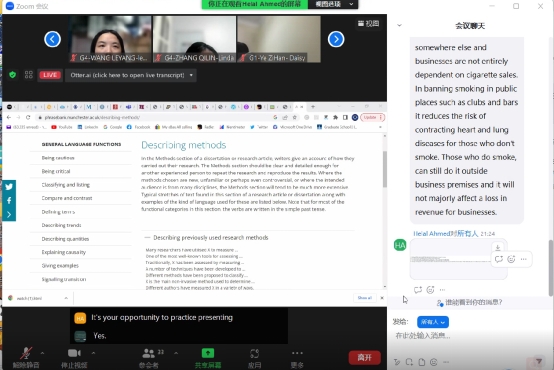 I was pleasantly surprised to participate in this course and experience the interesting teaching methods and highly interactive atmosphere of the class with professors at Imperial College London, this course has benefited me a lot. In terms of knowledge and skills, I have learned the whole process from academic research to publication and the precautions of key links in foreigner academia. Moreover, in the guidance of professors, we explore how to make more accurate academic expression, how to better dialogue and interact with the audience in presentations and how to conduct critical reading, thinking and make arguments credible and organized. At the same time, I also broke through my fears and shyness in this course, and was able to express my doubts and thoughts more confidently in less fluent English with the tolerance of teachers and classmates.