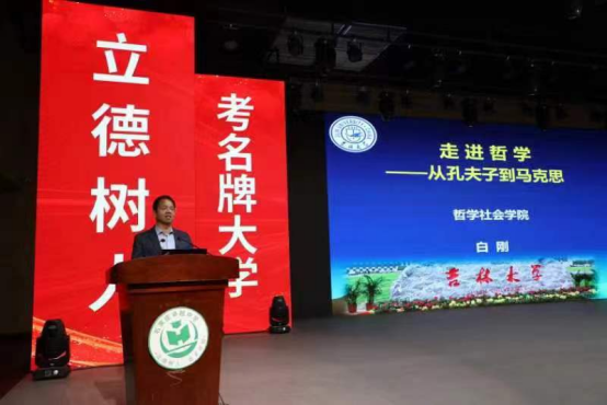 李建华教授等一行六人来到石家庄卓越中学进行招生宣讲和优秀生源基地授牌,会上白院长为卓越中学的学生做了《走进哲学——从孔夫子到马克思》的科普报告。