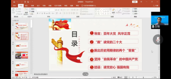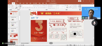 接着,白刚教授从二十大报告中梳理总结出“两个‘1’”、“三个‘2’”、“三个‘3’”,并向同学们重点讲述了党从现在起的中心任务和第一要务以及党全面建成社会主义现代化强国的“两步走”战略安排,指出了新征程上全体党员要做到的“三个务必”,强调了十年来党和人民事业具有重大现实意义和深远历史意义的三件大事:一是迎来中国共产党成立一百周年,二是中国特色社会主义进入新时代,三是完成脱贫攻坚、全面建成小康社会的历史任务,实现第一个百年奋斗目标。