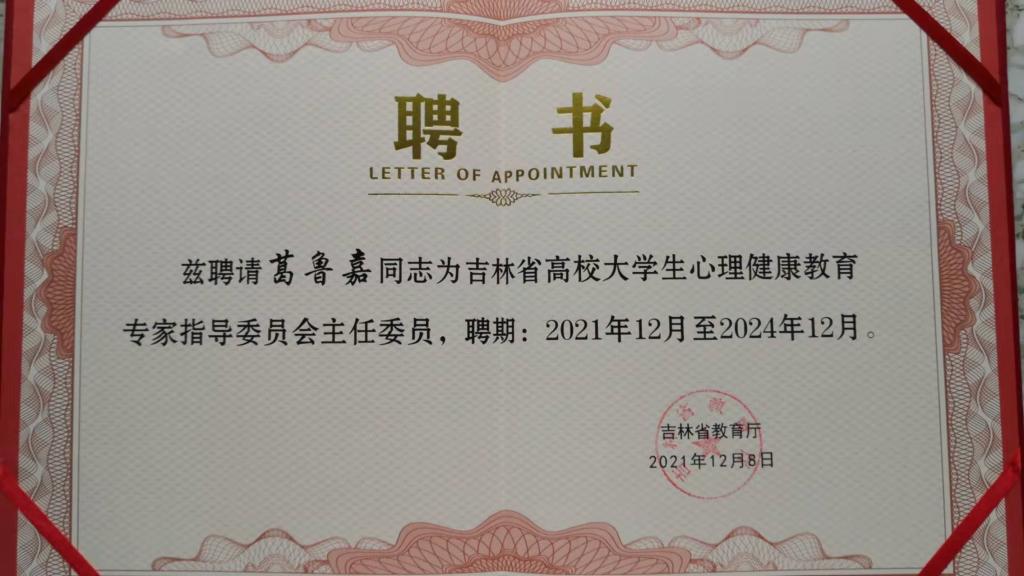 心理学系博士生导师葛鲁嘉教授被吉林省教育厅聘请担任了该委员会的主任委员。委员中包含了极速飞艇