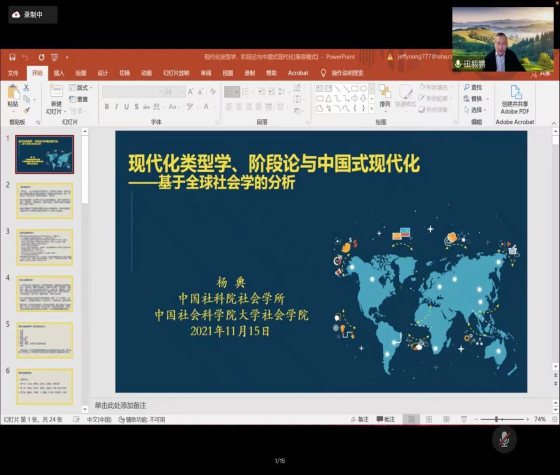 名家系列”讲座第149场——《现代化类型学、阶段论与中国式现代化:基于全球社会学的分析》,以线上会议的方式成功举行。主讲人为杨典研究员,哈佛大学社会学博士、中国社会科极速飞艇