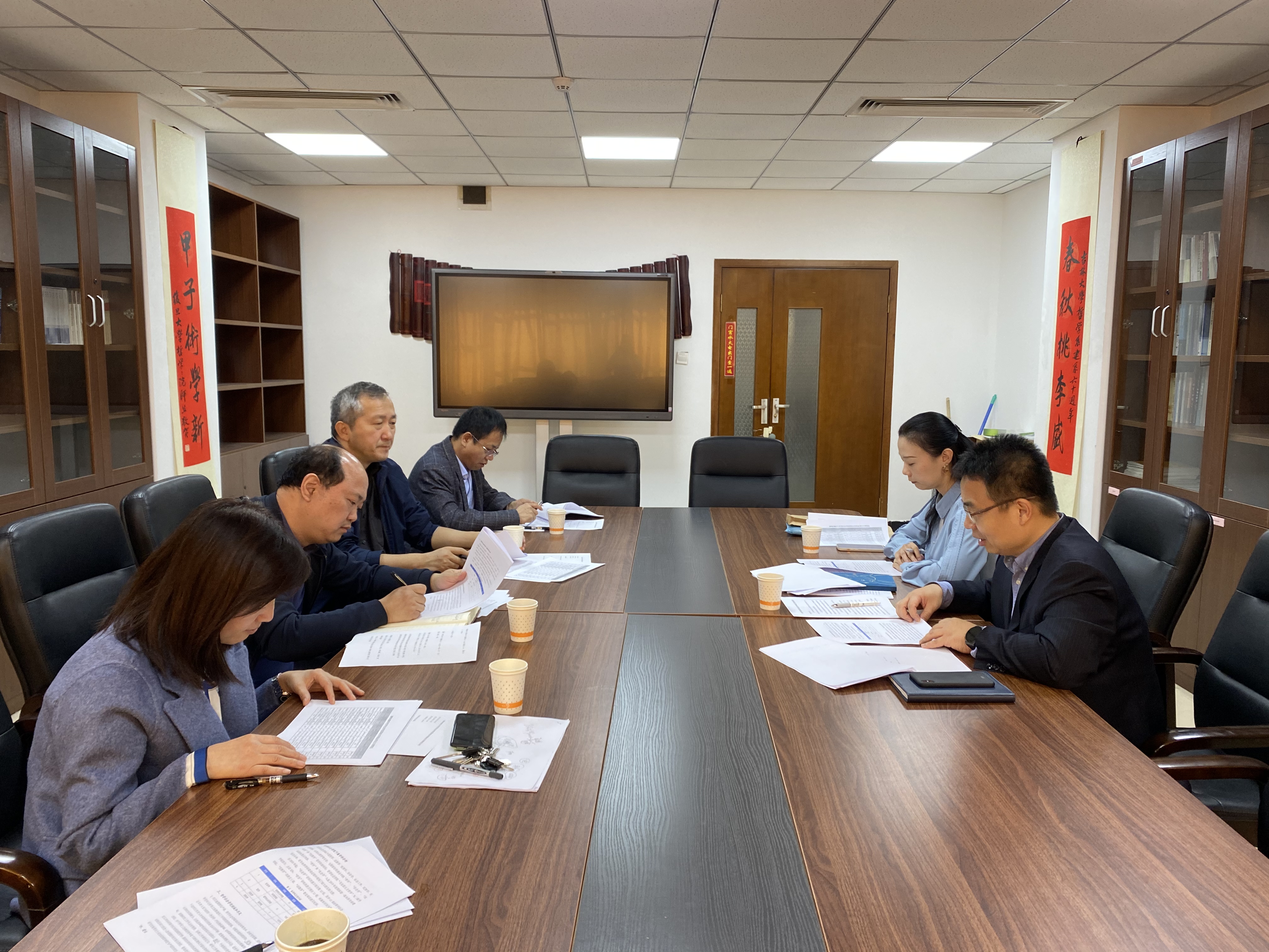 院长田毅鹏教授、副院长芦恒教授,副院长曲红梅教授、哲学系主任白刚教授、科研办公室主任李晓沫参加了调研座谈会。