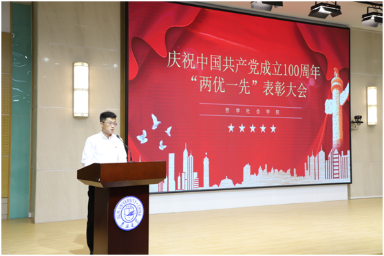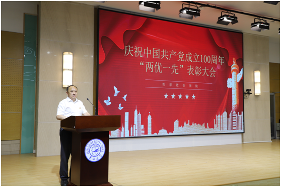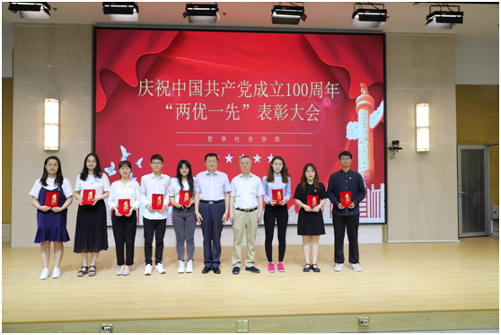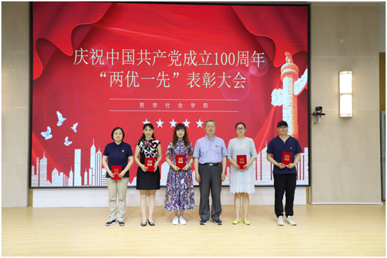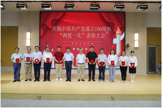 党委委员、院长田毅鹏同志为哲学系教工党支部等6个先进党支部颁发奖牌。