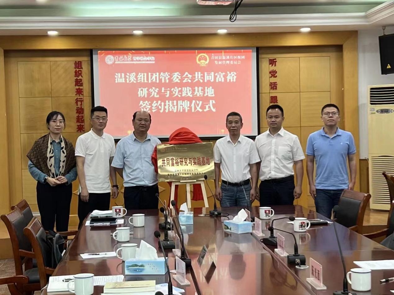 党委副书记兼副院长刘培强、温溪组团管委会主任童森军共同为共同富裕研究与实践基地揭牌。