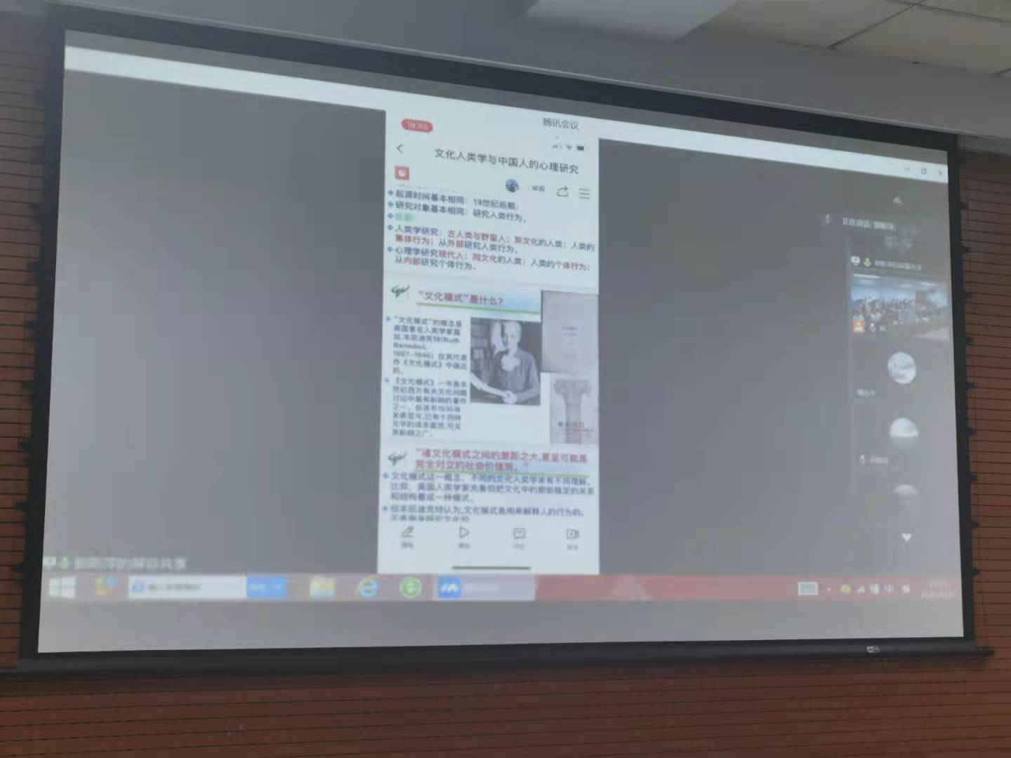 接下来,郭斯萍教授为大家带来的高赞讲座是“文化人类学与中国人的心理研究”。郭老师首先细致严谨的逐层分析现代心理学与文化人类学的源起与异同。现代心理学起源于西方科学文化背景,尤其与个人主义价值观密不可分,西方心理学的特点是西方人研究西方人,现代人研究现代人。文化人类学正好相反,研究的是异域文化的未开化的原始族群,即西方人研究非西方人,现代文化中的人研究原始文化中的人。郭教授进一步阐述,现代中国人既成长于历史悠久的中国传统文化,又受现代文明影响,故其心理特点与现代西方人及原始人类既有联系又有不同。 故研究中国人的心理,不仅要依赖现代心理学的知识与技术,同样也要求助于文化人类学的理论与方法。这种视角对很多同学来说是一种新的视野拓展,大家积极踊跃的争先提问,郭教授耐心的深入浅出地对同学们的提问进行了讲解和回应。