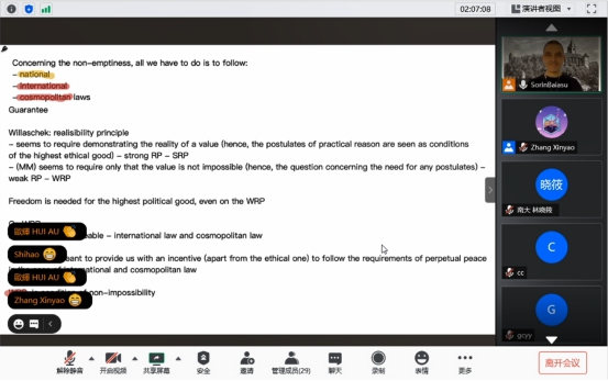2020年12月7日、8日、11日、14日、15日,题为《Kant’s Idea of Perpetual Peace Today: A Solution to the Puzzle of the Guarantee》的极速飞艇