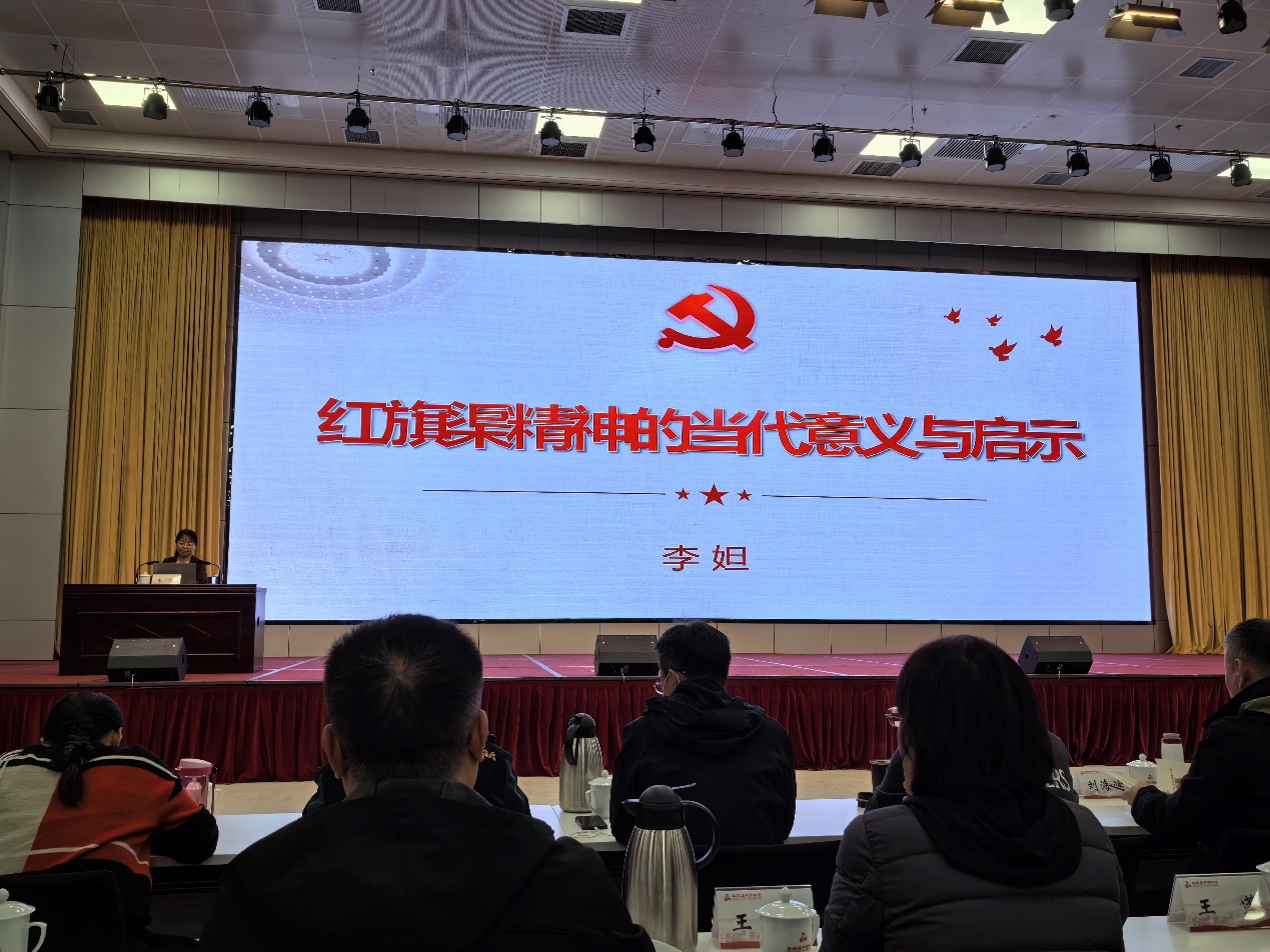 原院长李妲老师以《红旗渠精神的当代意义与启示》为题,为学员们进行专题授课。一幅幅铭记历史的珍贵照片,隐含着触动内心的感人故事;一组组凝聚心血汗水的数字,铭刻着当地人民的艰辛征程。李老师从红旗渠修建的历史背景、红旗渠精神的当代意义、红旗渠精神的启示三个方面,为学员们论述了红旗渠精神是党的初心和使命的集中体现、是中华民族精神的重要组成部分、是中国人民奋斗圆梦的生动写照,深入分析了坚定的理想信念是我们党奋勇向前的力量源泉,以人民为中心是我们党执政的最大底气,勇于担当是我们党带领人民攻坚克难的关键因素等历史启示。