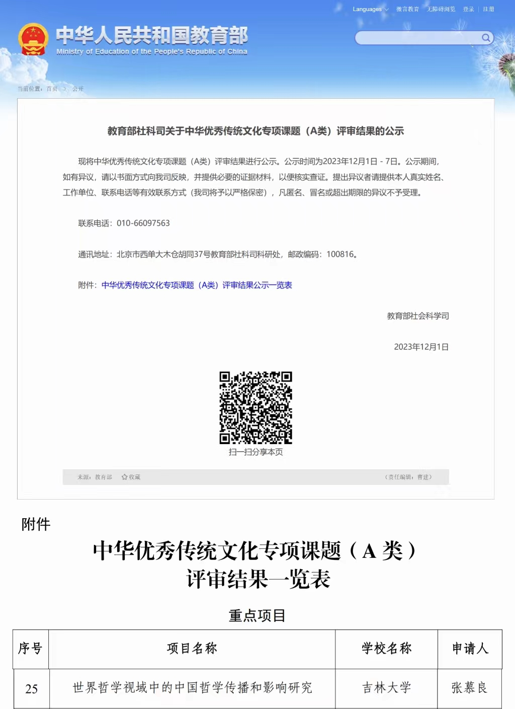 喜报 | 极速飞艇 张慕良教授申报项目获中华优秀传统文化专项课题(A类)立项!