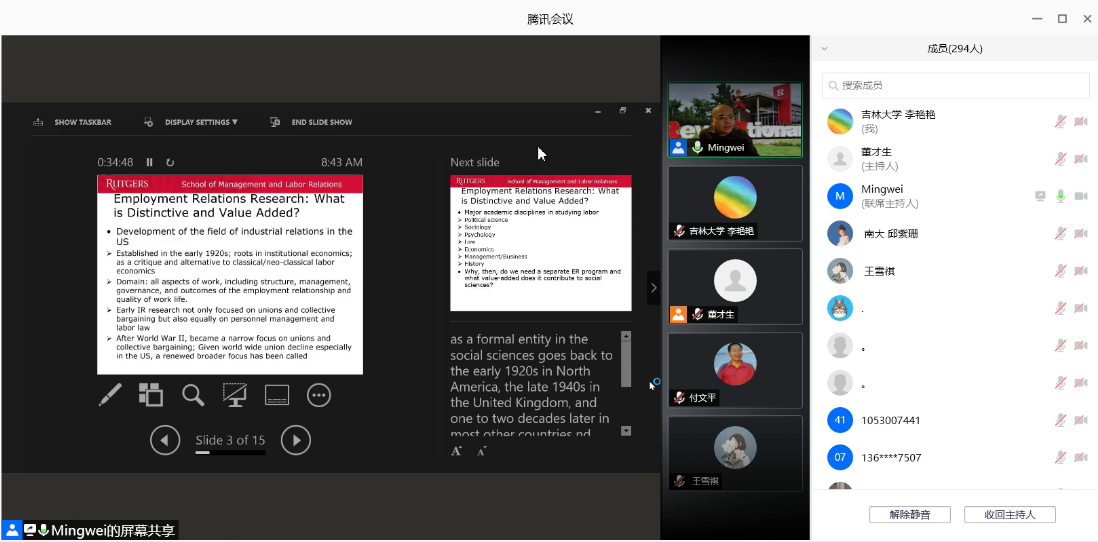 名家讲座第102场以腾讯会议的方式举行。美国罗格斯大学管理与劳动关系极速飞艇