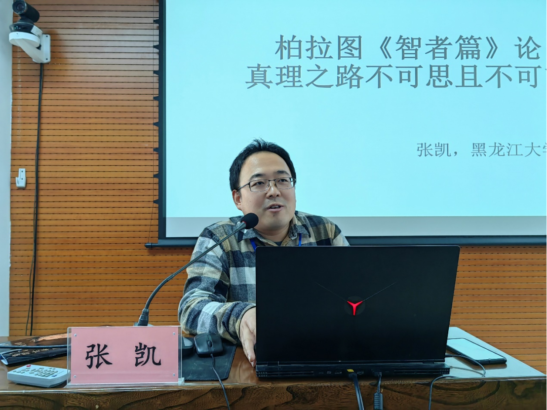 第三位发言人张凯老师的报告题目是《柏拉图〈智者篇〉论真理之路不可思且不可言》。张老师指出,据巴门尼德,唯有真理之路既可思又可言,而意见之路则不可。柏拉图在《智者篇》向读者揭示,巴门尼德的真理之路事实上亦不可思、亦不可言。在他看来,肯定可思可言的意见之路是通达可思可言的真理之路的前提。这意味着柏拉图实际上持有实在、思想和语言的多样性立场。
