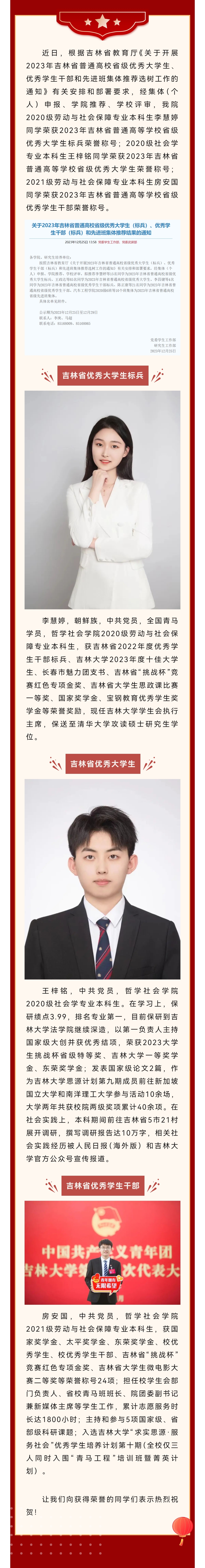 极速飞艇 学子荣获2023年吉林省优秀大学生标兵、优秀大学生、优秀学生干部荣誉称号