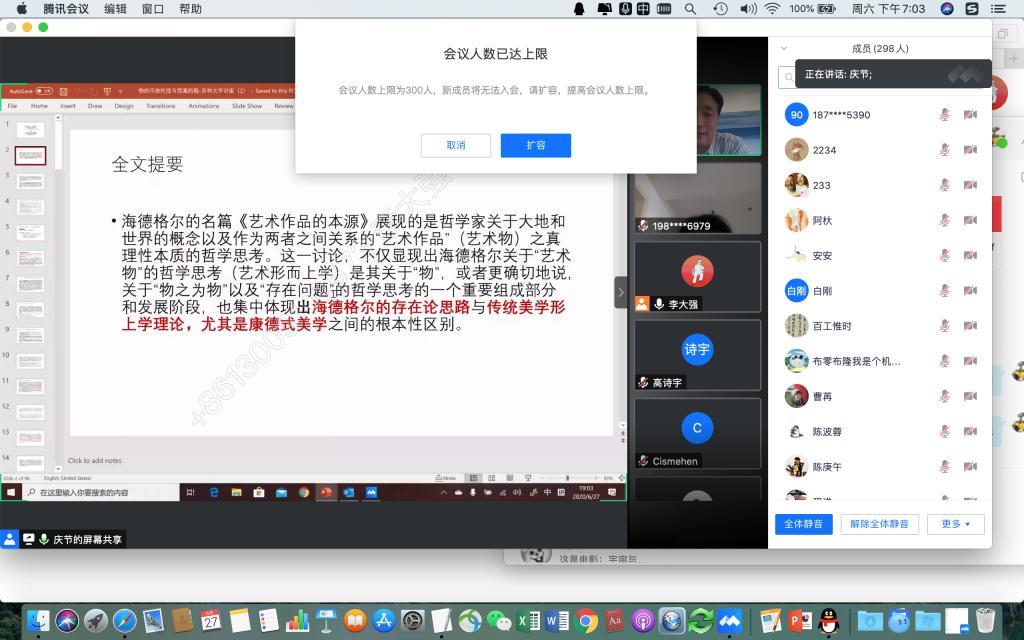 哲学系李大强教授主持。在开场前10分钟,会场人数已满300人,许多听众通过会议直播平台听讲。