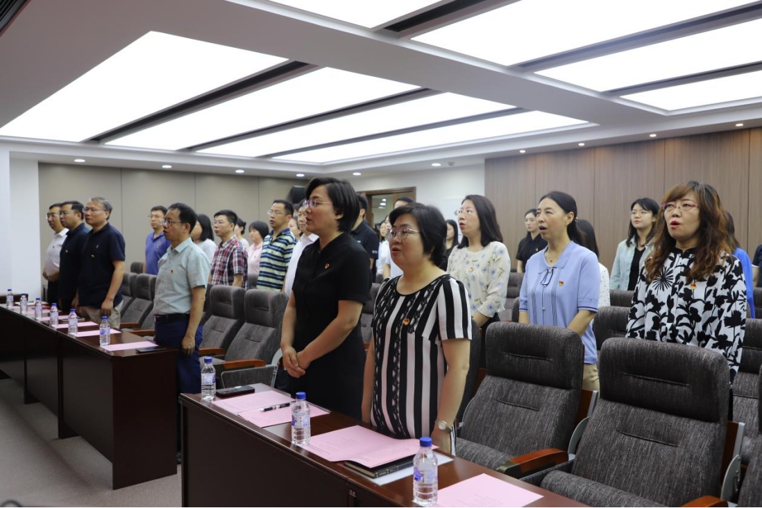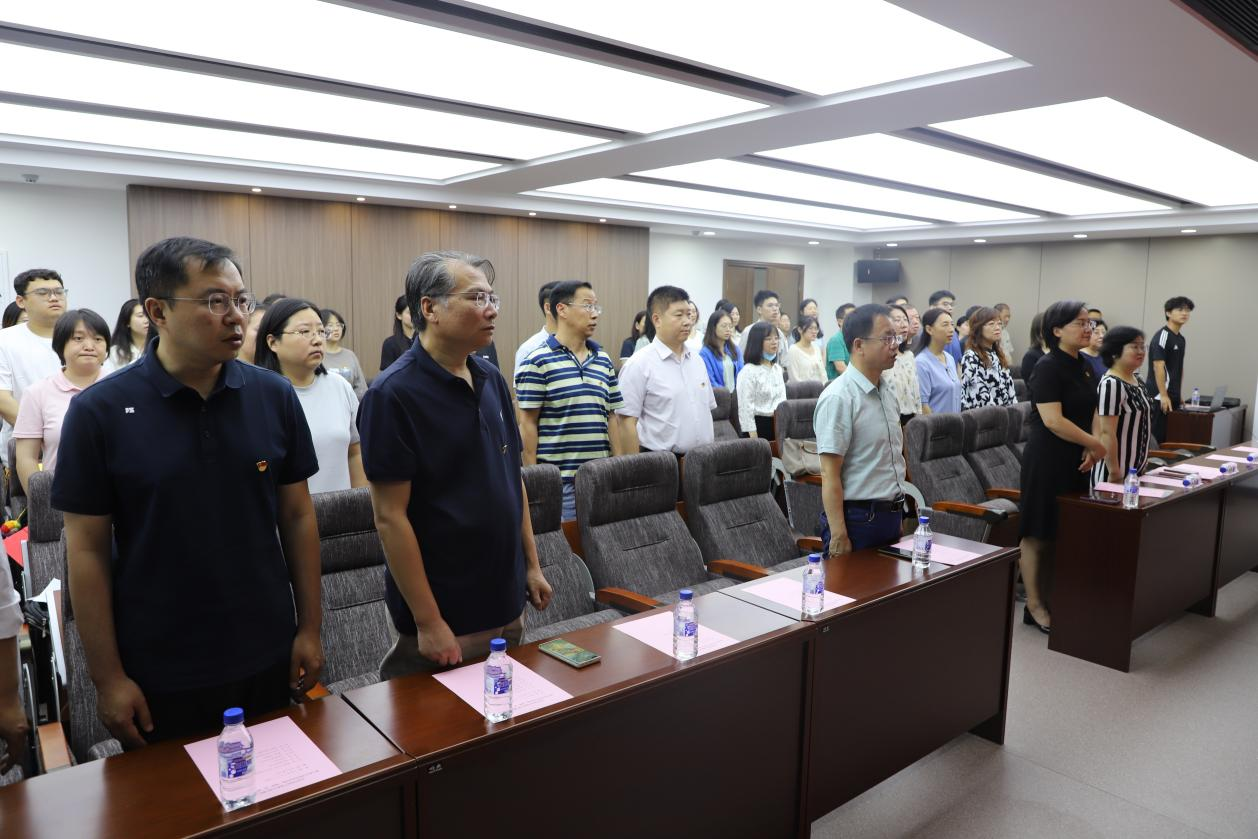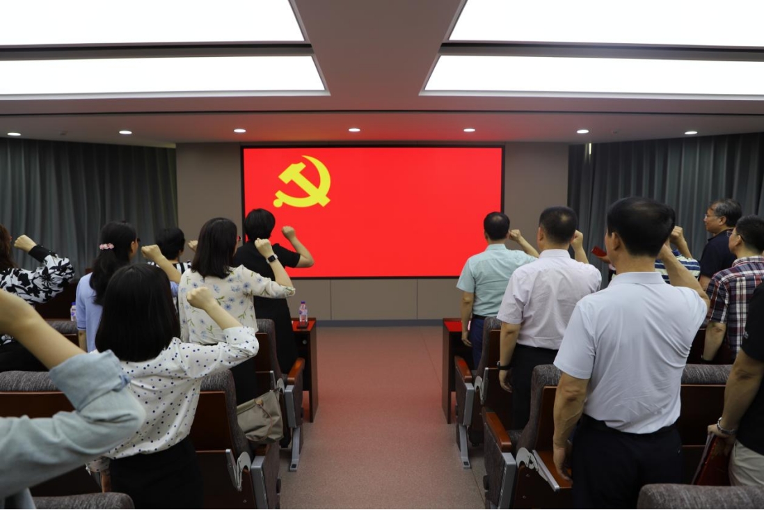 副院长朱文君带领全场师生党员一同重温入党誓词。党员们面向党旗,高举右手,庄严宣誓。“为共产主义奋斗终身,随时准备为党和人民牺牲一切,永不叛党。”坚定的誓言声铿锵恢宏,响彻全场,激励着各位党员不忘初心、牢记使命,在中国式现代化建设中切实肩负起新时代新征程党赋予的使命任务,为推进强国建设和民族复兴伟业接续奋斗。