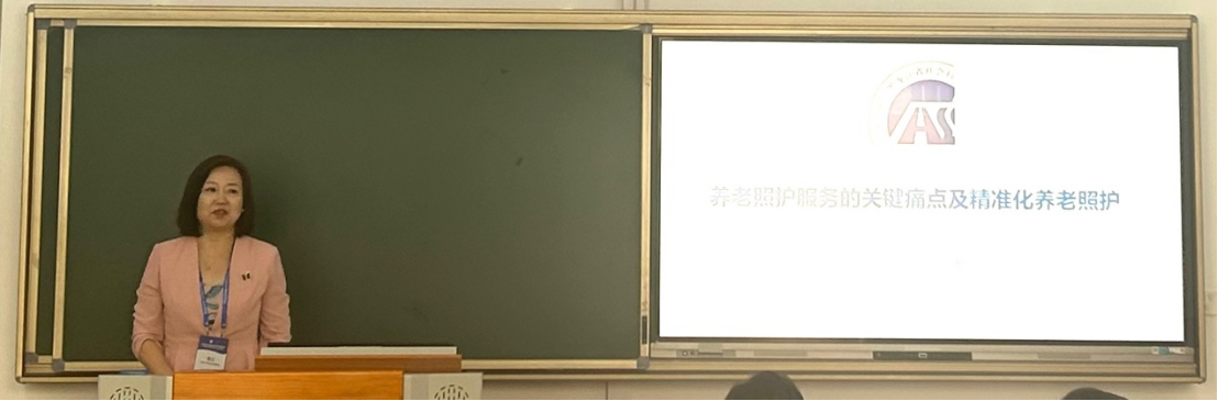 副院长、社会学研究所黄红研究员作了题为《养老照护服务的关键痛点及精准化养老照护》的报告。她指出当下养老服务存在着资源利用率不高、照护人才短缺、老年长期照护服务模式发展不够、对老年人失智失能的预防重视不足等关键痛点,并提出从“精准识别—精准整合—精准供给—精准支持—精准管理”等方面为老年群体提供供需匹配的照护产品和服务。
