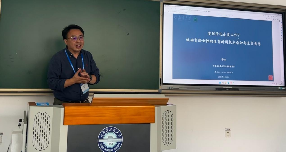 副院长郭未教授作了题为《数字时代中的流动世代:母职惩罚视角下的生育意愿》的报告。他分析了流动女性预期生育成本与其生育意愿之间的因果关联,利用产前样本和反事实产前样本计算流动女性生育时间成本,运用产后样本与反事实产后样本计算流动女性工作比例。研究发现,流动女性生育的产前和产后时间成本越高,其一孩和二孩的生育意愿越低。