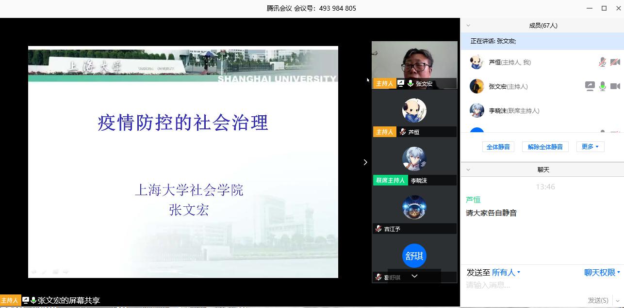 院长、教授、博士生导师张文宏教授,为线上八十余名师生作了题为《疫情防控的社会治理》的学术讲座。极速飞艇