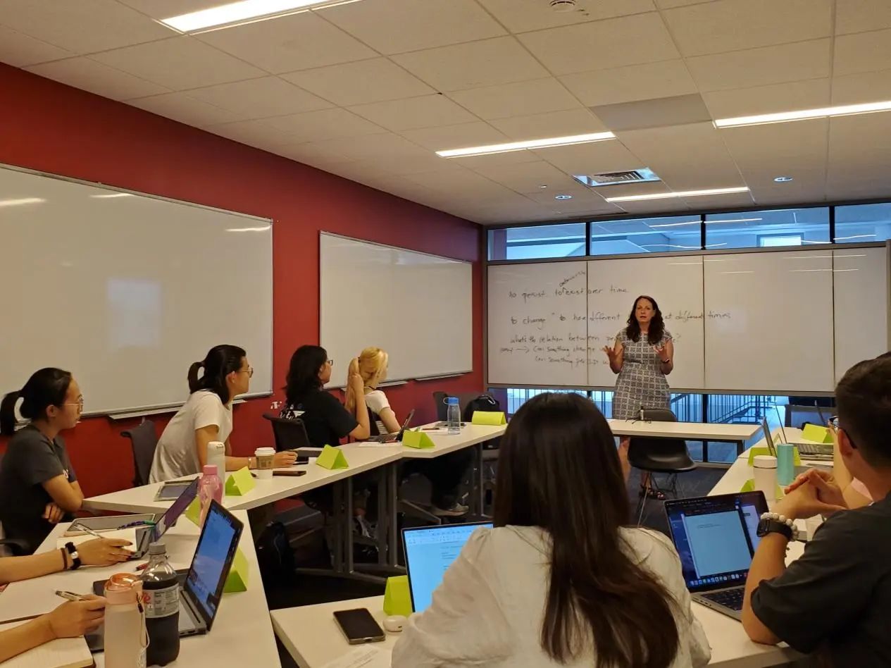 罗格斯大学哲学系主任Karen Benett教授对罗格斯大学哲学系进行了介绍,并就哲学史研究是否等同于哲学研究、哲学研究的基本问题、哲学学术研究的逻辑思维等问题做了精彩的阐述。Benett教授鼓励同学们在两周的暑期学术训练中积极与教师们互动,以哲学问题为导向,主动、独立、活跃地进行哲学思考。接着,罗格斯大学哲学系负责短期学术交流项目的Alexander Skiles教授也对同学们表示了欢迎和鼓励。