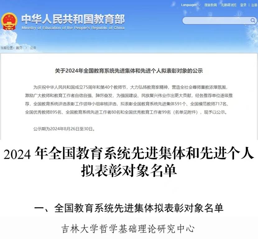 哲学基础理论研究中心获得“全国教育系统先进集体”称号。