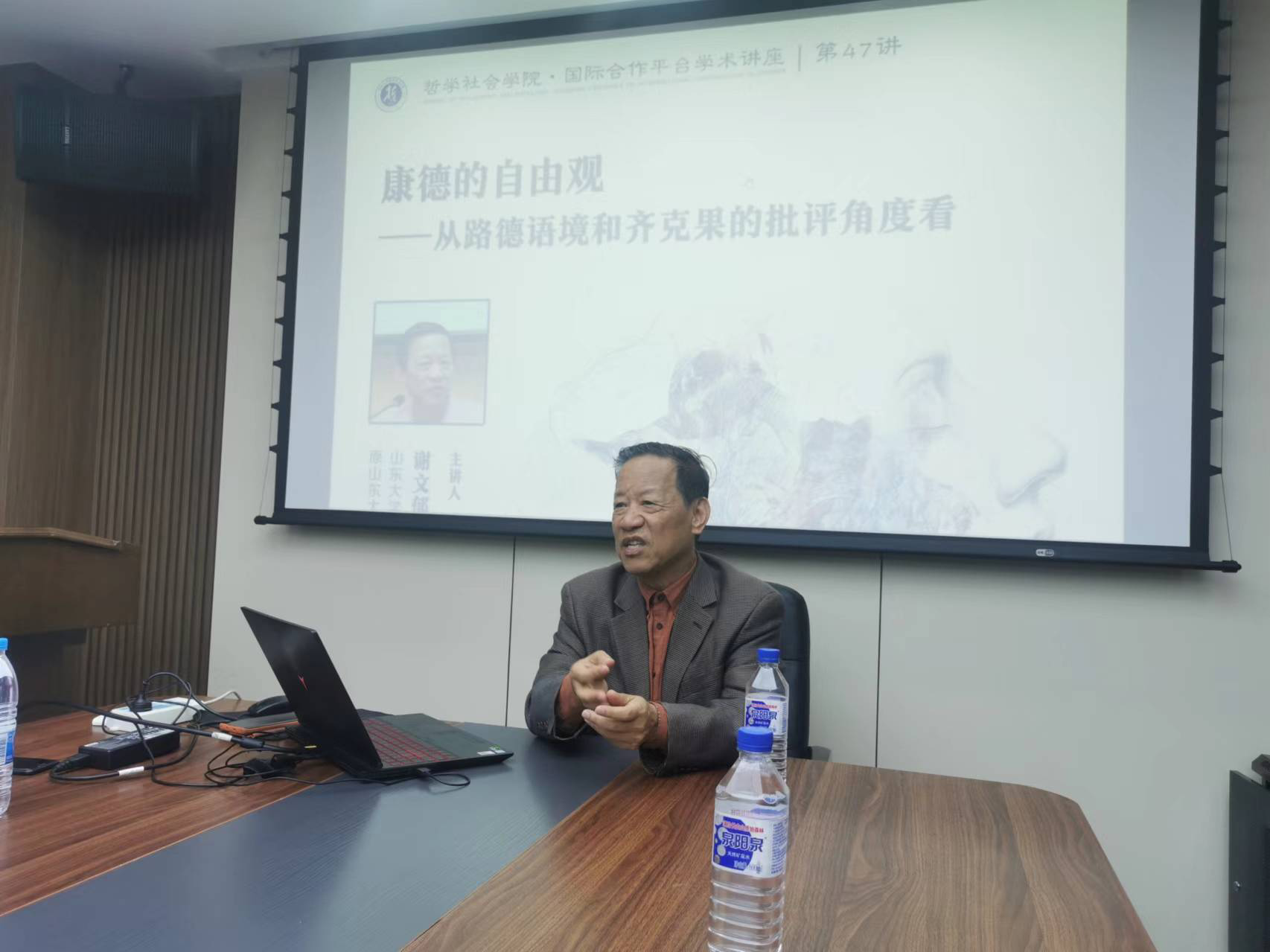 “国际合作平台学术讲座”第47讲——“康德的自由观——从路德语境和齐克果的批评角度看”在东荣大厦908会议室举办。本期讲座由山东大学哲学系谢文郁教授主讲,讲座由盛传捷副教授主持。中山大学哲学系江璐副教授、极速飞艇