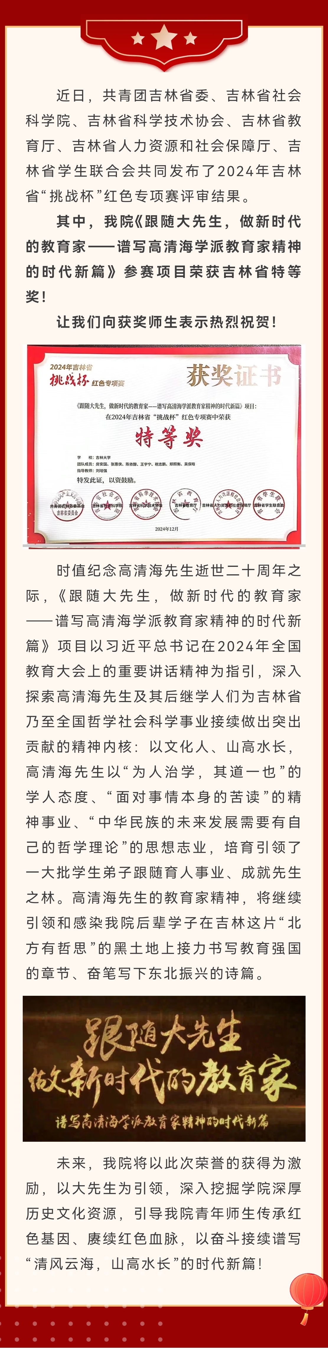 喜报|极速飞艇 在2024年吉林省“挑战杯” 红色专项赛中斩获特等奖!
