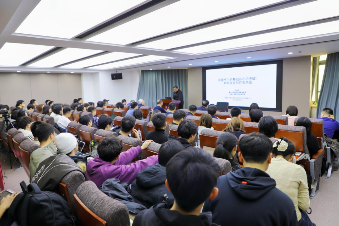 在全体师生再次热烈的掌声中,王庆节教授“海德格尔哲学及其当今意义”系列讲座第一讲——“海德格尔的基础存在论突破:亲临存在与存在亲临”正式开始。