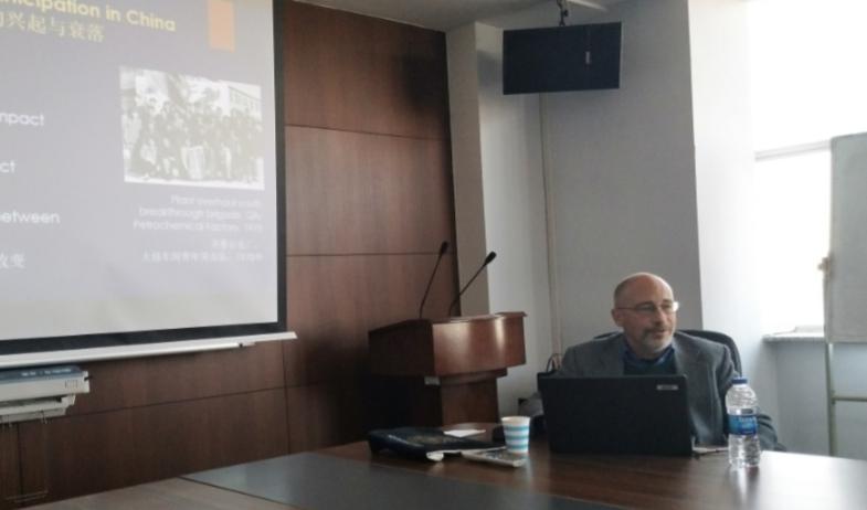 国际化示范基地学术讲座第十六讲,在东荣大厦908会议室举行。美国约翰霍普金斯大学社会学系安舟(Joel Andreas)教授以“中国工厂中的民主参与”为题展开讲座。田毅鹏院长,林兵教授,吴海琳副教授等出席讲座。