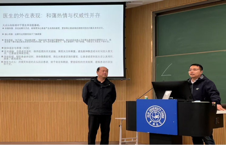 二院陈鹏、刘贺、李博、杨茂光、朱博驰、李杨雪、刘雨哲、孙颖健、于多等临床医生。每节课由一名社会学教师和一名医学教师共同授课,社会学教师讲授理论框架,医学教师补充临床案例。课程主题涵盖健康社会决定因素、医疗保障制度与健康治理、健康管理与治理、符号互动论与医患关系、社会文化与健康、社会环境因素与健康、社会经济因素与健康、医务社会工作与医患关系、医学社会学研究方法等多角度内容。该门课程通过多角度的内容设置,使医学生能够从宏观和社会层面理解医学问题,提升其综合素养和人文关怀能力,从而更好地服务于医疗卫生事业的发展。