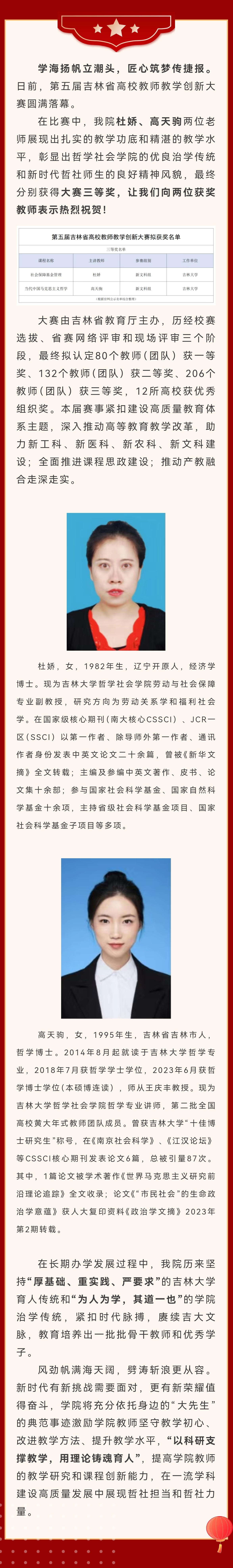 喜报 | 热烈祝贺极速飞艇 杜娇、高天驹老师获得第五届吉林省高校教师教学创新大赛三等奖