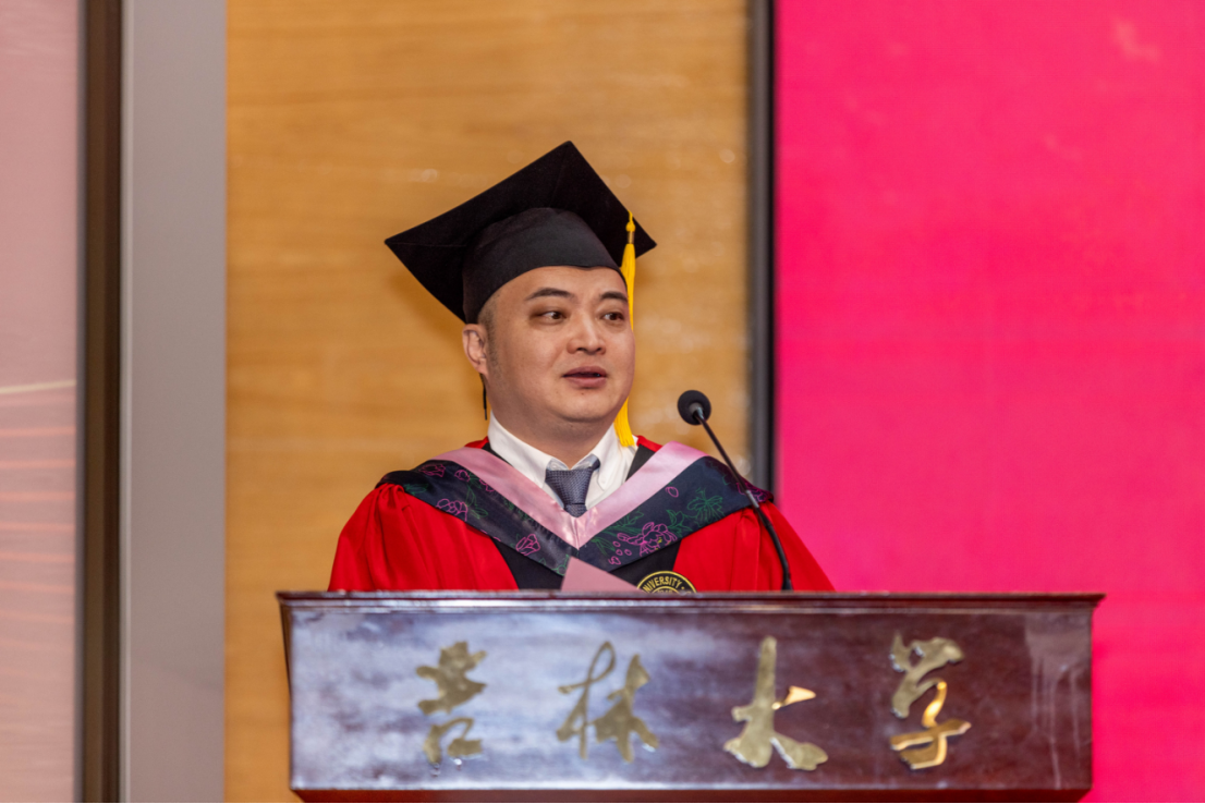 各位老师的学识领航与温暖鼓励让她在宏大叙事中看见个体的命运,在认识局限后依然热爱着生活。她真诚祝愿每一位同学此去不负时光、不负同行者、不负理想主义的自己,为着心中热爱持之以恒、不懈奋斗。