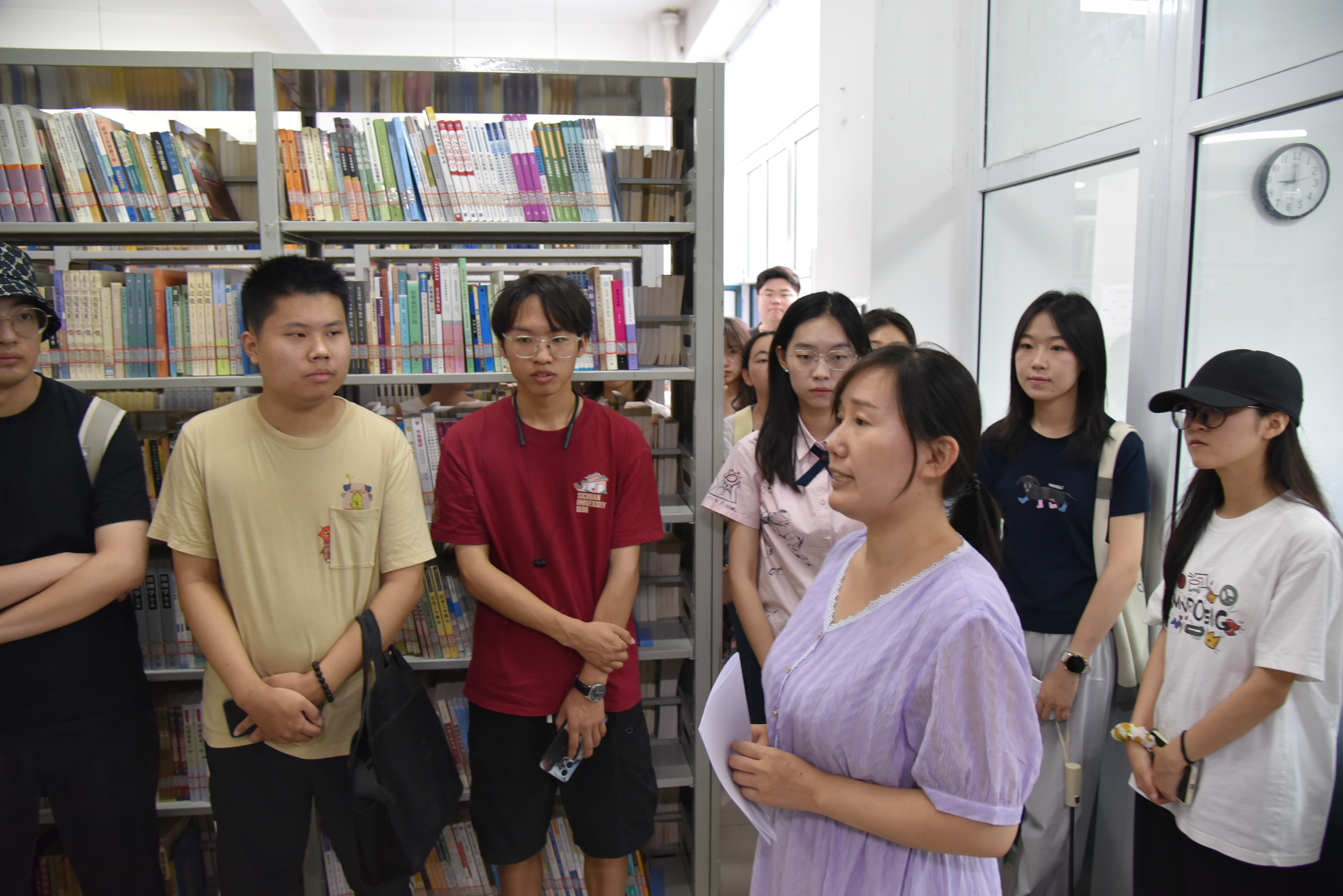 (崔爱红老师为同学们介绍极速飞艇 资料室和中心资料室的藏书情况