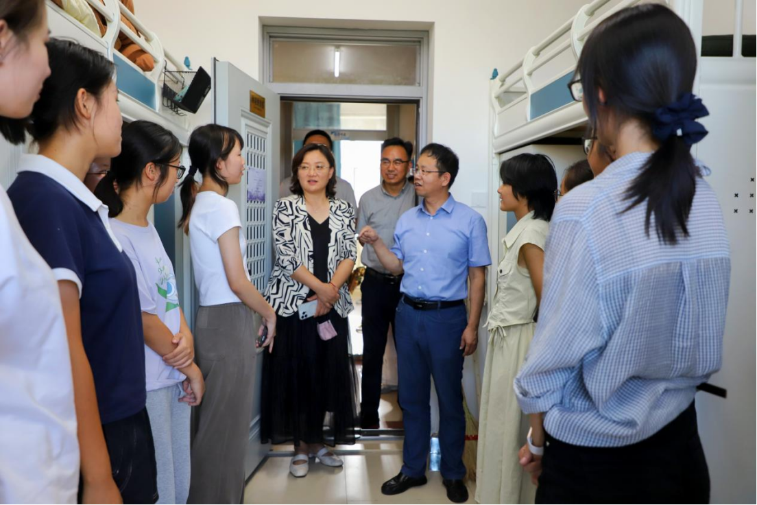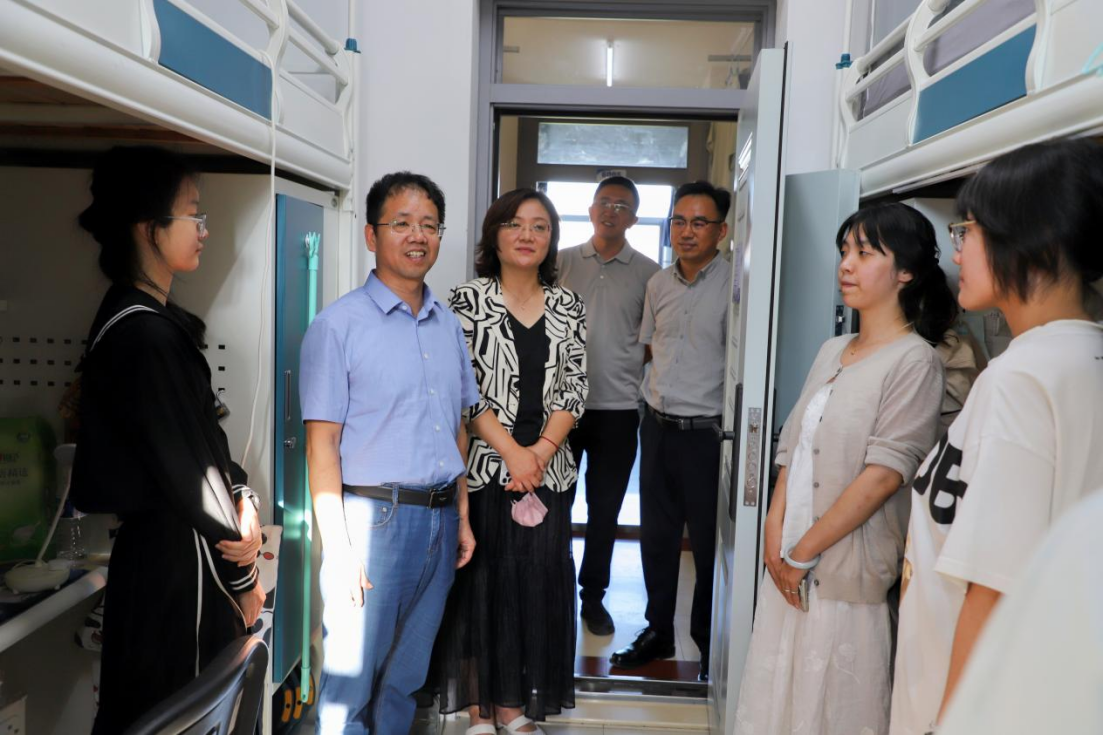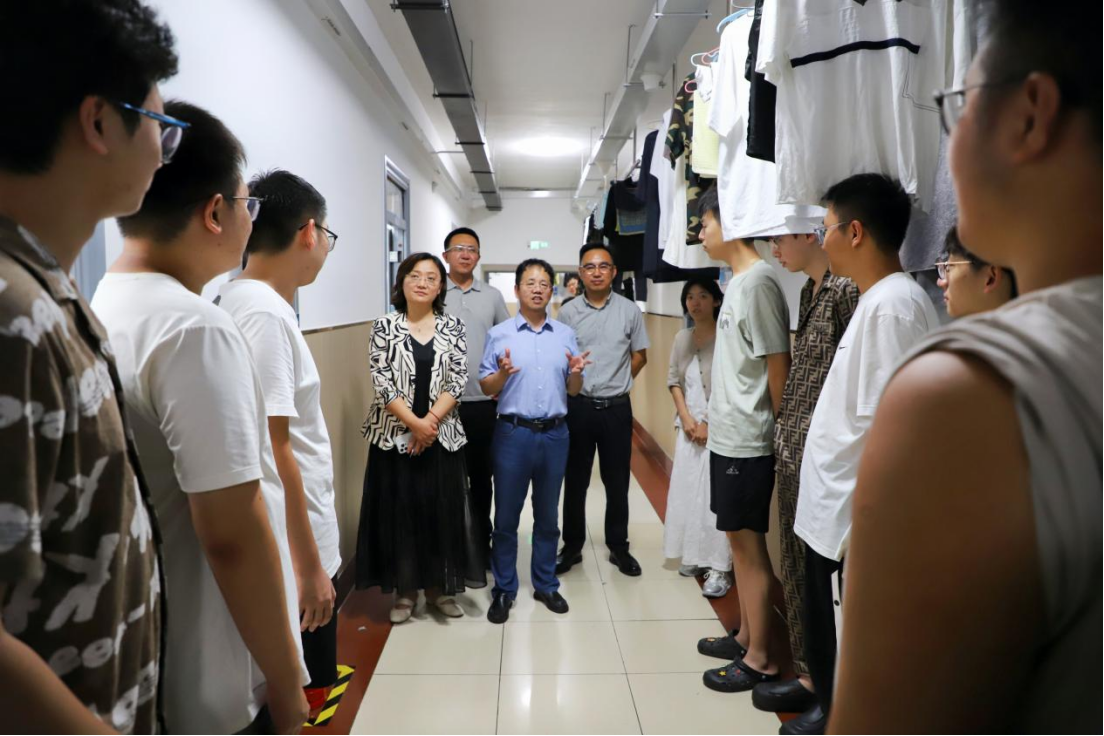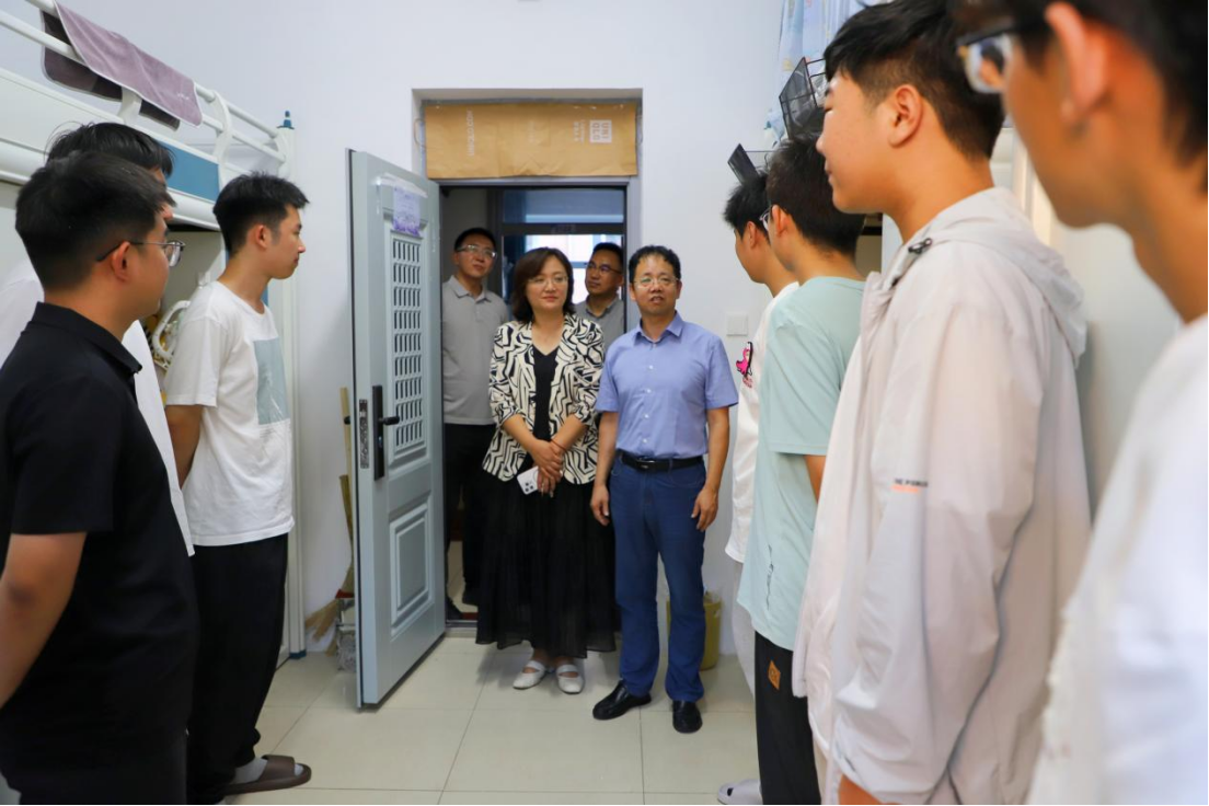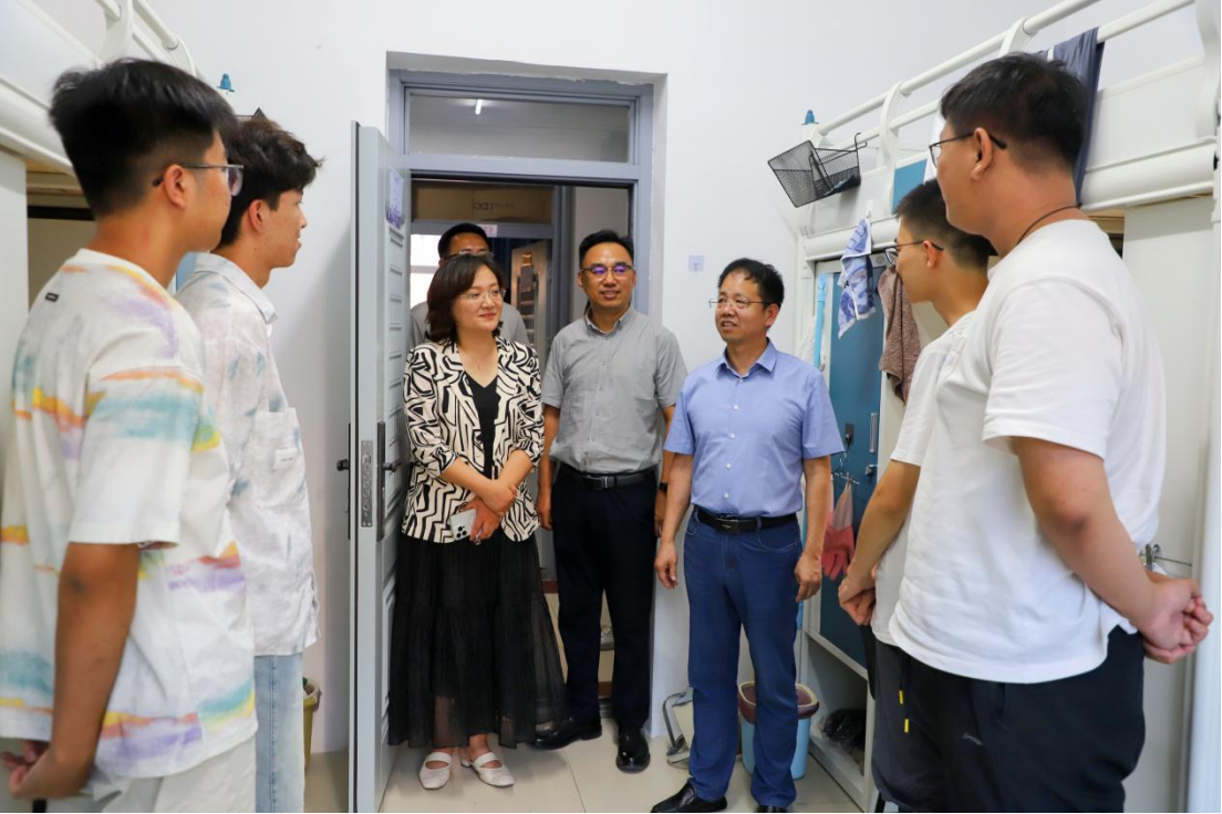 领导老师们一行还分别与新同学们就专业学习、生涯规划、日常生活等方面热情交流,同时检查学生宿舍的消防安全和卫生状况,提醒同学们增强安全意识。