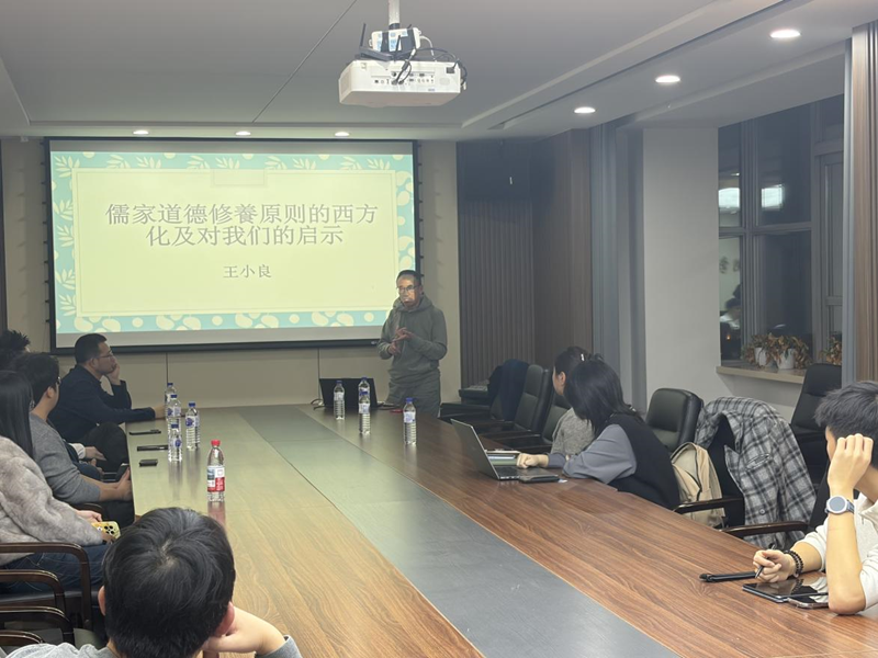 “哲学与汉学的对话”系列讲座第五讲在东荣大厦908室举行。美国纽约皇后图书馆劳瑞顿分馆馆长、北京外国语大学特聘专家王小良教授应邀主讲,系统阐述儒家道德思想对西方文明的深远影响。