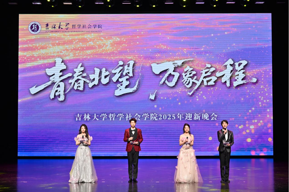 师生校园文化生活的同时凝聚起认同感和归属感,11月22日,我院在鼎新大讲堂举行“青春北望,万象启程”迎新晚会。晚会以青春为笔,以梦想为墨,通过“向上·向光·向北”三个层层递进的华彩篇章,为全体师生奉献了一场融汇思想深度、艺术美感与青春热情的文化盛宴,生动展现了哲社学子昂扬向上的精神风貌。
