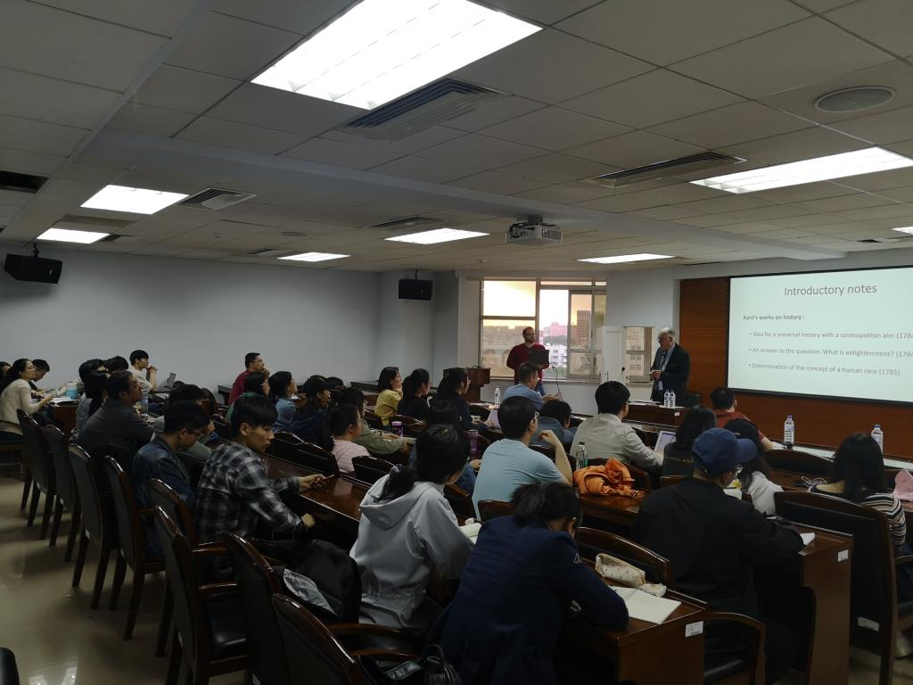 师生做题为“Ideas on Kant’s Idea of a Universal History with a Cosmopolitan Aim”的学术讲座,我系外籍教师Nicholas Rimell主持了本次讲座。