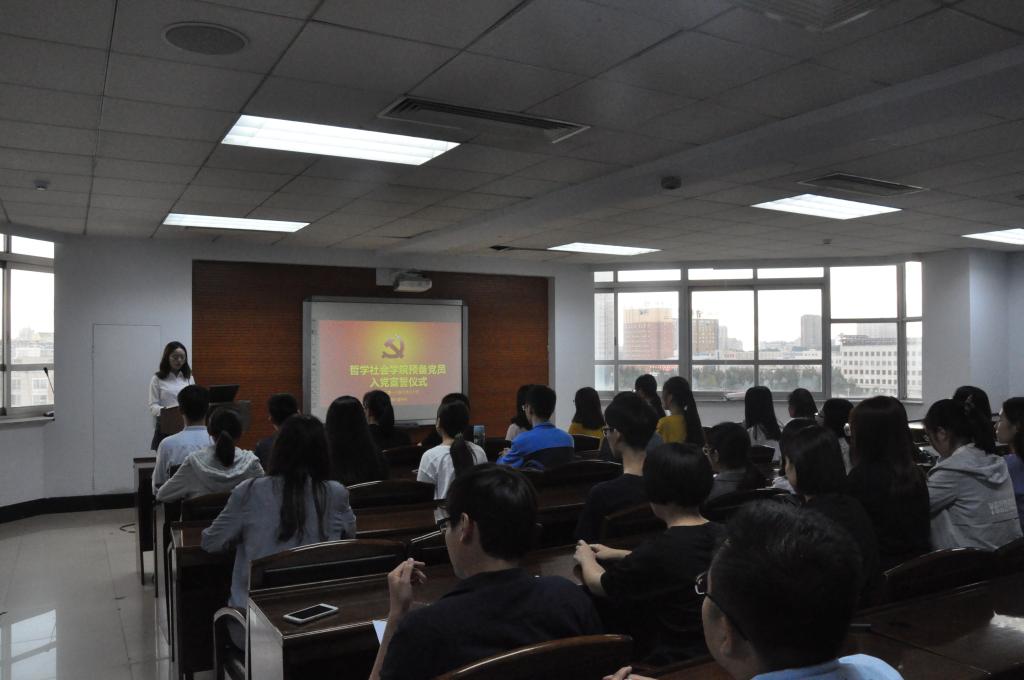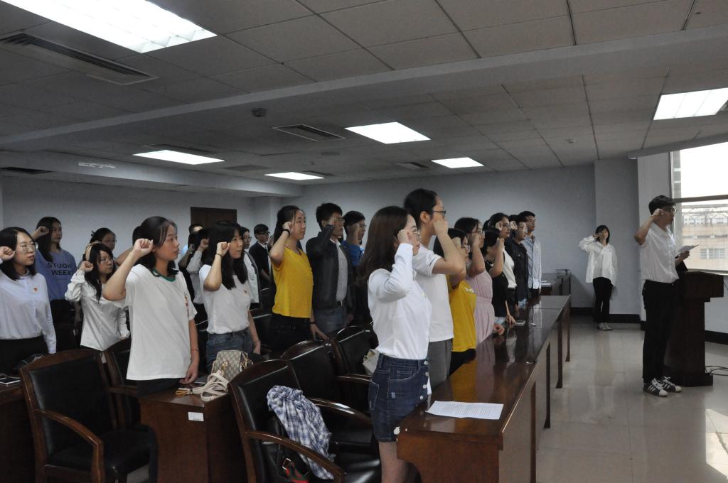 于2018年8月30日下午三点半在东荣大厦904会议室隆重举行了新党员入党宣誓仪式。参加本次入党宣誓仪式的有党委副书记兼副院长赵洁老师、党委副书记张俊峰老师、28名新发展的党员,以及部分入党积极分子代表。仪式由张洁老师主持。
