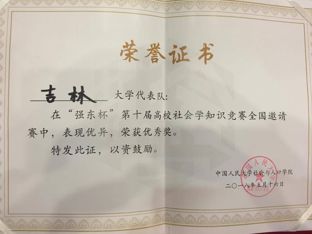 芦恒副教授领队,社会学系本科生陆兵哲(2014级)、刘树禄(2015级)和杨健男(2016级)同学参与了本次比赛,并最终获优秀奖。在颁奖仪式上,中国人民大学副校长洪大用教授总结讲话并为获奖队伍颁奖。京东集团党委书记、副总裁龙宝正先生对活动的圆满成功表达祝贺。