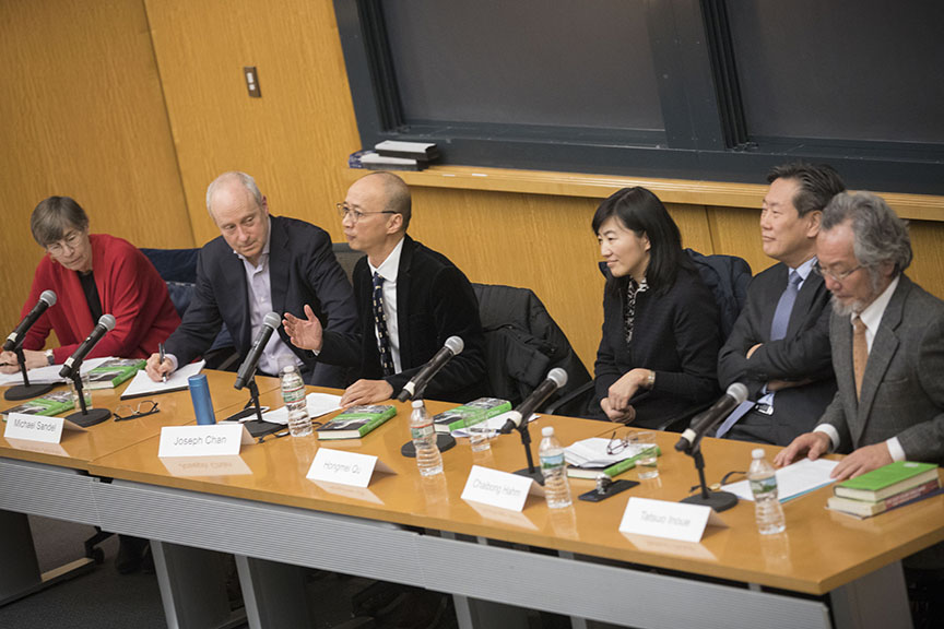 曲红梅教授受哈佛-燕京学社裴宜理(Elizabeth Perry)社长邀请在美国哈佛大学参加题为“遇见中国——迈克尔•桑德尔与中国哲学”的圆桌会议。2018年1月哈佛大学出版社出版了由当代著名哲学家、美国哈佛大学政府系教授迈克尔•桑德尔主编的《遇见中国——迈克尔•桑德尔与中国哲学》一书。书中收录了海内外研究中国哲学的名家就桑德尔的社群主义与中国哲学的关系所著的论文以及桑德尔本人的回应。为扩大桑德尔思想与中国哲学的对话,哈佛-燕京学社利用其每年一度的圆桌会议,进一步讨论相关话题。圆桌会议成员共六人:桑德尔教授本人、哈佛-燕京学社社长裴宜理教授、香港大学政治与公共管理系陈祖为教授、韩国峨山政策研究院主席咸在凤教授、日本东京大学法极速飞艇