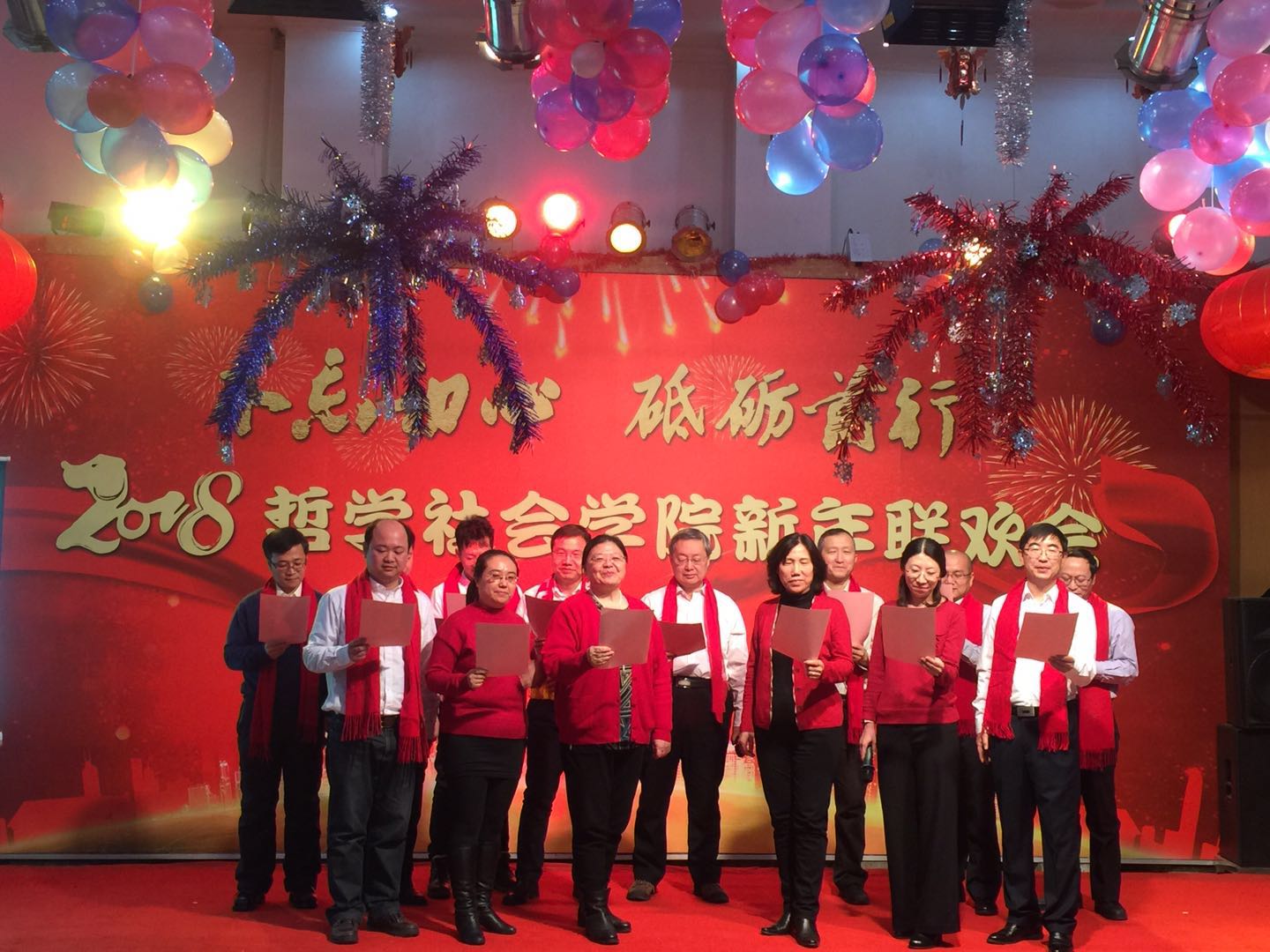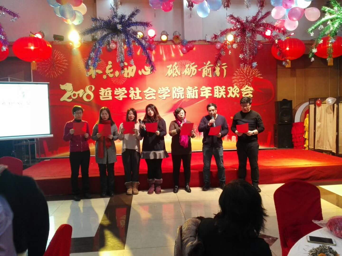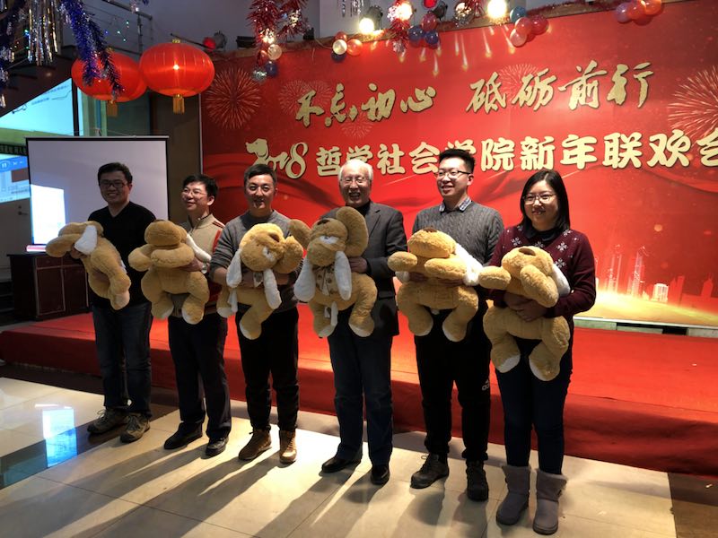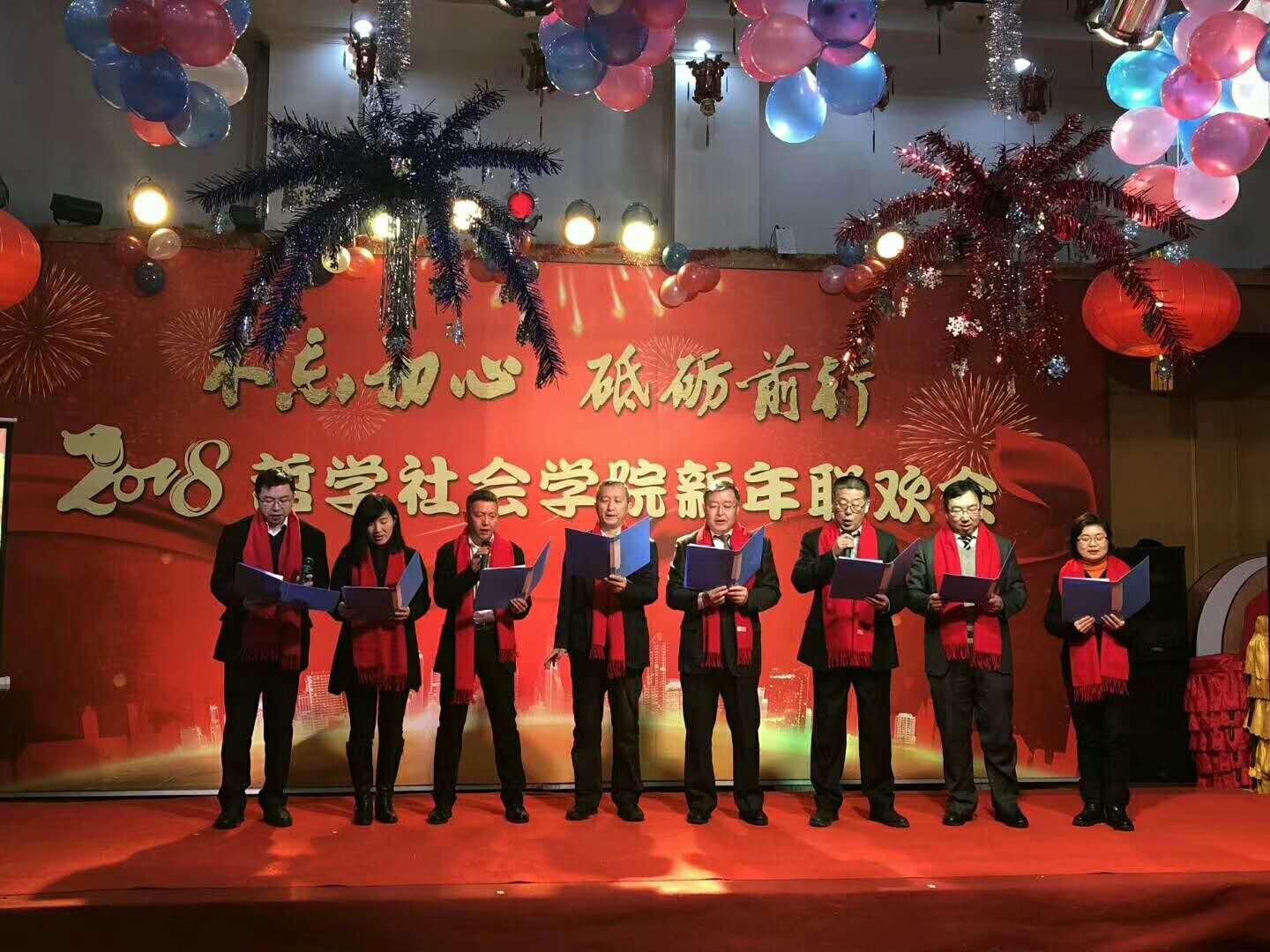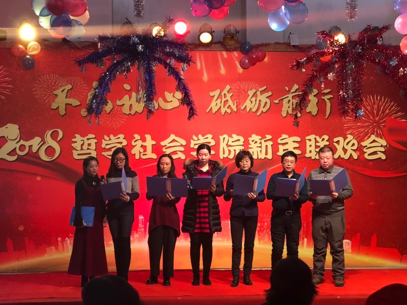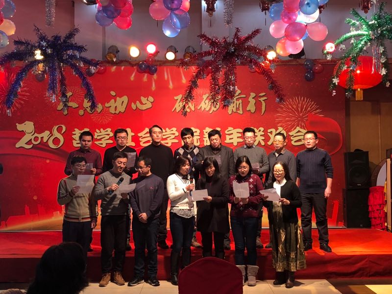 各系及行政管理团队纷纷表演了精彩的节目。行政管理团队的舞蹈《咖喱咖喱》、哲学专业教师的合唱《歌唱祖国》,社会学《歌曲串烧》、心理学系的三句半等节目,无不展现了教职工们卓越的才华和积极向上的精神风貌。联欢会中更是穿插了形式多样的游戏环节,将联欢会的欢乐气氛推向了新的高潮。整场晚会历时3个小时,最后,联欢会在领导班子的大合唱《众人划桨开大船》中落下帷幕,将本场联欢会的主题:“不忘初心 砥砺前行”上升到了新的高度。