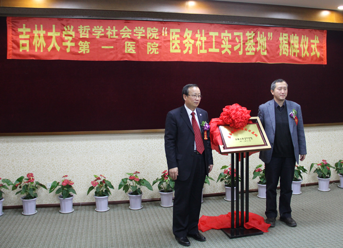白求恩医学部党委书记屈英和、张东航,白求恩第一医院的副院长薛赤,以及其他医务志愿者。会上,田毅鹏副院长做了简短发言。他强调,“医务社会工作实习基地”的建立,是培养社会工作专业学生和人才运用“助人自助”等相关理念和实务方法介入医疗纠纷、医患关系等过程的重要途径,同时也是“人文关怀”与“以人为本”理念在医疗工作中的主要体现。此外,实习基地的建立也是促进社会工作专业和医务教学工作者组成跨学科研究团队的重要契机,最终在全国率先打造出“医疗社会工作”的教学与科研品牌。