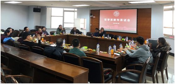 的支持下,哲学系教师在东荣大厦A904会议室,举办了新年茶话会暨年度总结评优会。本次新年茶话会暨总结评优会由哲学系副系主任高超主持,国家教学名师孙利天教授亲临茶话会。