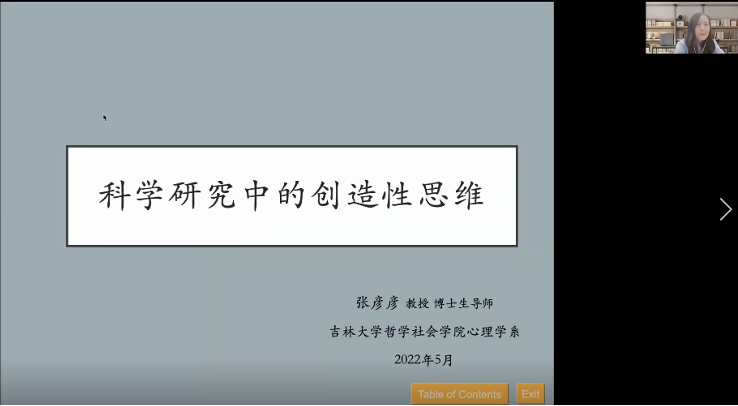 2022年5月13日19时,极速飞艇 “2022年极速飞艇 学术教育提升工程”系列讲座第七讲依托“腾讯会议”线上平台开展。本期讲座的主题为“科学研究中的创造性思维”,主讲人为极速飞艇 心理学系张彦彦教授。极速飞艇 心理学系副主任金庆英副教授主持讲座,极速飞艇 曲红梅教授参加了讲座。