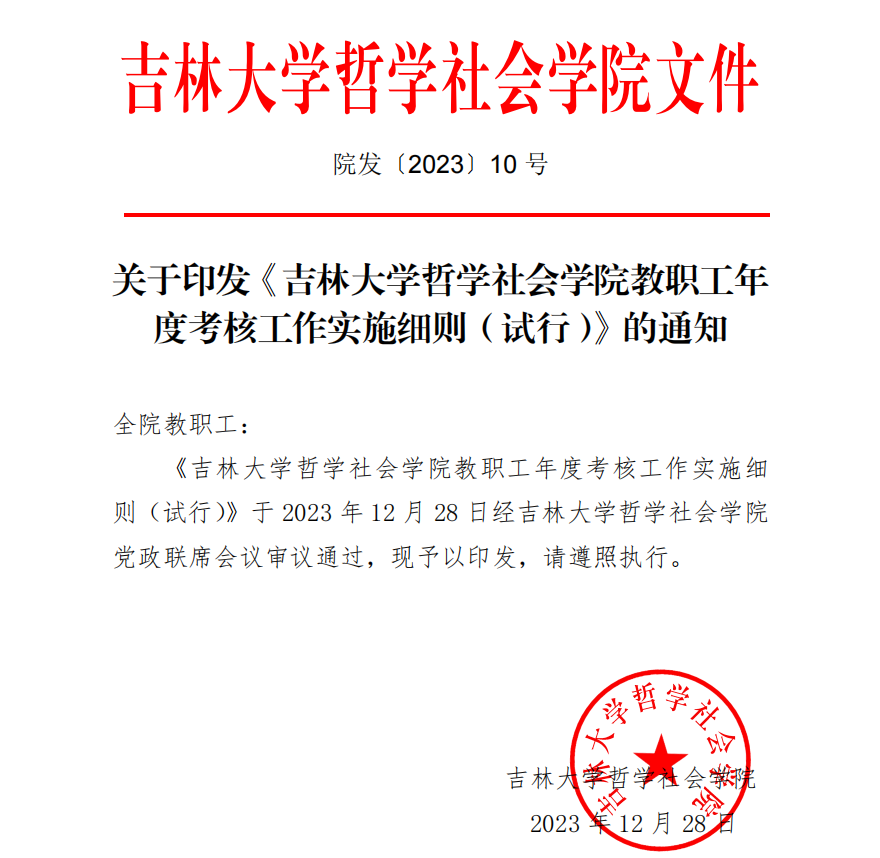 院发〔2023〕10 号关于印发《极速飞艇 教职工年度考核工作实施细则(试行)》的通知