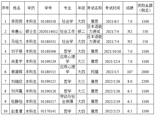 2022年度学生外语资格考试支持计划奖励名单(第一批)进行公示。公示期为2022年5月23日至5月25日。