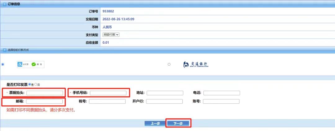 (3)缴费完成后1-2个工作日内系统会将电子票据推送至学生预留信箱中。