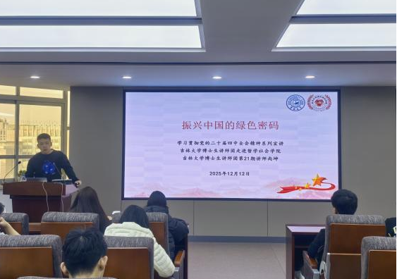 本次宣讲围绕新时代绿色发展的理论逻辑与实践路径展开,系统阐释了习近平生态文明思想的核心要义及其时代价值。主讲人尚坤首先就该思想形成的时代背景进行了详尽阐述。随后,分别从价值维度、认识维度和实践维度,解析了“十个坚持”的核心内涵,突出强调了“人与自然和谐共生”及“绿水青山就是金山银山”等重要理念,并指出该思想既继承中华优秀传统文化,又实现了对传统发展理念的深刻变革。主讲人进一步结合生态文明建设的具体实践案例与实施路径,阐述了该思想在推进中国式现代化进程中所发挥的关键作用与取得的实际成效。最后,尚坤指出,习近平生态文明思想不仅是新时代我国生态文明建设的根本遵循,也为全球环境治理提供了具有东方智慧的中国方案,展现出我国与世界各国共同构建清洁美丽世界的坚定意愿。他鼓励在场同学将理论认识与实践行动相结合,发挥专业优势,积极服务于国家振兴的伟大实践。
