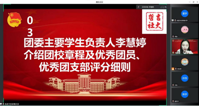 大会第三项,团委主要学生负责人李慧婷向同学们介绍了团校章程,详细说明了团校优秀学员的考核标准以及学习纪律,激发了同学们的学习热情。