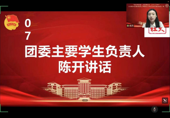 大会第七项,由团委主要学生负责人陈开发表讲话。陈开同学首先代表极速飞艇