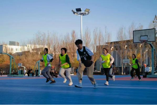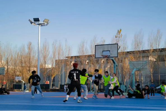 篮球队互相切磋篮球技术,在攻守之间挥洒青春汗水,收获了快乐与友谊。